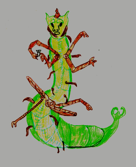 Catalyst - (Caterpillar + Chemical/Genetic Reaction) Origin “Catalyst” an enormous caterpillar was formed by a young, mad scientist experimenting on insects in his parent’s basement. These experiments were both of chemical and genetic in nature. “Catalyst” was created with his genes of bamboo plant. This was done to help created opposable hands and arms. Behavior Catalyst attitude is quite playful. Though his attitude is playful, it conceals his true dangerous nature. His real motivation is not known. Perhaps he is looking to turn into a butterfly. Something he apparently lost the ability to do. Perhaps he acts for revenge upon the scientist who created him. Whatever the reason, it appears as though he has chosen the monster’s side. Attacks 1. Catalyst has 2 sets of 4 bamboo-like jointed legs. He not only can steal weapons from players or take unused weapons from the ground, but he has the ability with his opposable hands to use the weapons! 2. In addition to the 8 jointed, bamboo legs, Catalyst has regular caterpillar legs. As a defense he can roll in a ball. If he extends his jointed legs out he can clothesline enemies. He also has hairs on his back he can shoot and release. 3 Not only is he fast when moving in a ball, it is the strategy and not the force. Strategy represents his ability to coordinate attacks and movements with other monsters. These strategies can be used to capture and contain the players. 4. If he is destroyed and exploded by some type of missile, Catalyst explodes violently releasing a poisonous slime as some caterpillars do. Cons Admittedly a character like this is complex and could be hard to design into a game. However Catalyst could be scaled down to fit the needs of any monster game. |