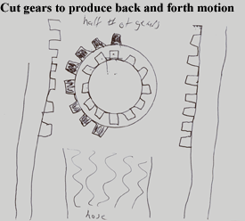 half, turning gear teeth, a chain that alternates gears like a bike,