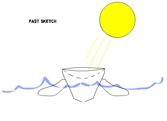 So many thoughts about be stranded running through my head... it is hard to come up with a solution to get drinking water. I need something simple. And I see it is going to be simple with all I have to work with is the water proof nylon sale, a Swiss Army knife, and some vines of the vegetation from the island. I’ve got to keep things simple. Finding potable water is no easy task especially on the Ocean. Keeping things simple, I know of 2 ways to get water from the ocean: evaporation and filtration. My equipment has lead my to the solution of evaporation. I cut some vines from the vegetation and bunch them together in the form of a circle. The circles radius is about 2 feet or less. It would have to be determined what size vs size of the sail for maximum output of water evaporator improvised devices. I continue to make pieces of the sail into shapes of sacks (similar to trash bags). I make the sacks slightly larger than the 2 feet radius of the vines. I overlap the seam and tie it with little strings that were also cut from the sail. As I draw the strings tight I leave a small opening at the bottom of the sack. (So water will partially fill the sack when it is placed in water) I make another set of circles with the vines with a radius slightly smaller than the original 2' one. I then fit the sack around the 2' circle then press in a slight parabolic shape in the top (the side without the hole). (Parabolas are the most efficient shape when collecting solar power and I like them.) I lock the sack in place with the small circle that fits tightly after inserting a sleeve formed out of the sail and sail ties. This sleeve is to collect the evaporated water. It is on both sides and has a stick on the inside center to create a gap in the vine circles to allow the evaporating water to escape while still creating a seal around the sack and outside air. These sleeves open up to a wider bottom with some rocks as weights. This will allow the cooler water to condense the evaporated fresh water back into liquid water. I can also add a weight like a fishing sinker to the bottom if needed. These water devices will be launched near the shore and be tied to anchors on the shore line. I can make many of these and although it is a lot of work I will should be able to collect more than a day’s drinking water from these devices. |
