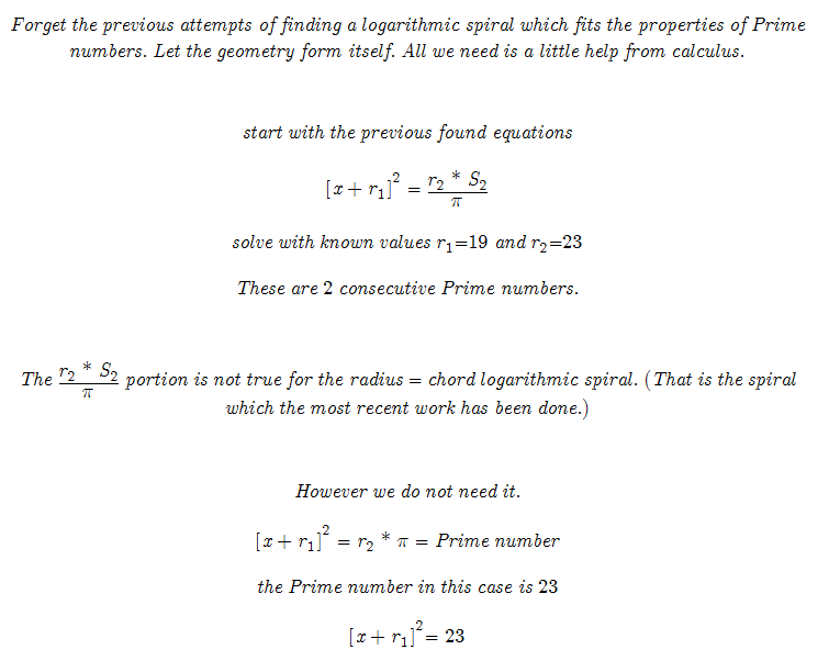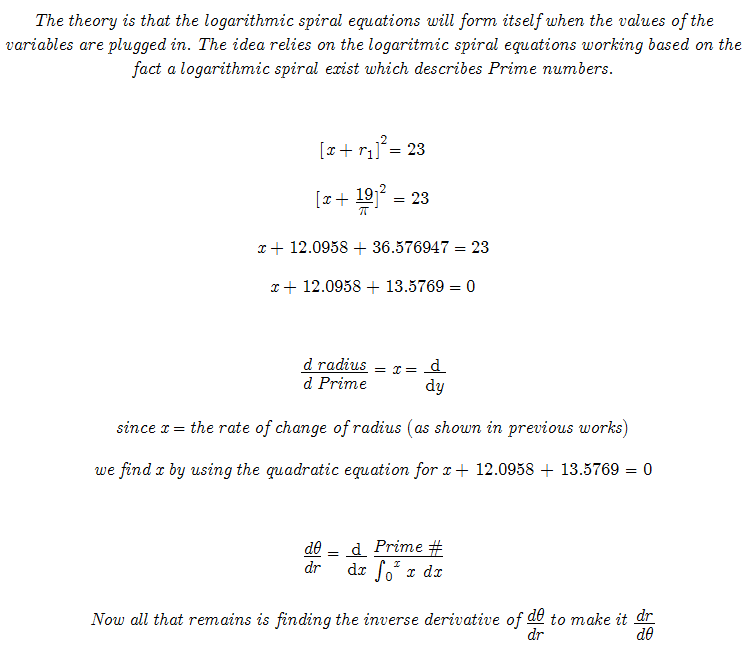 Summary: This remains untested which means there is a great chance that it is wrong. However the idea is outlined here. If the idea is correct all that needs to be found is the inverse of the derivative for d-theta / d radius . This is just a draft. I will try to develop the ideas further. But until then... May the Creative Force be with You