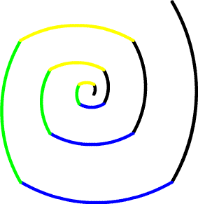 I propose this: We already know many properties of involutes and logarithmic spirals. It would be useful to note what is the absolute length around a logarithmic spiral. (the length of the spiral itself)